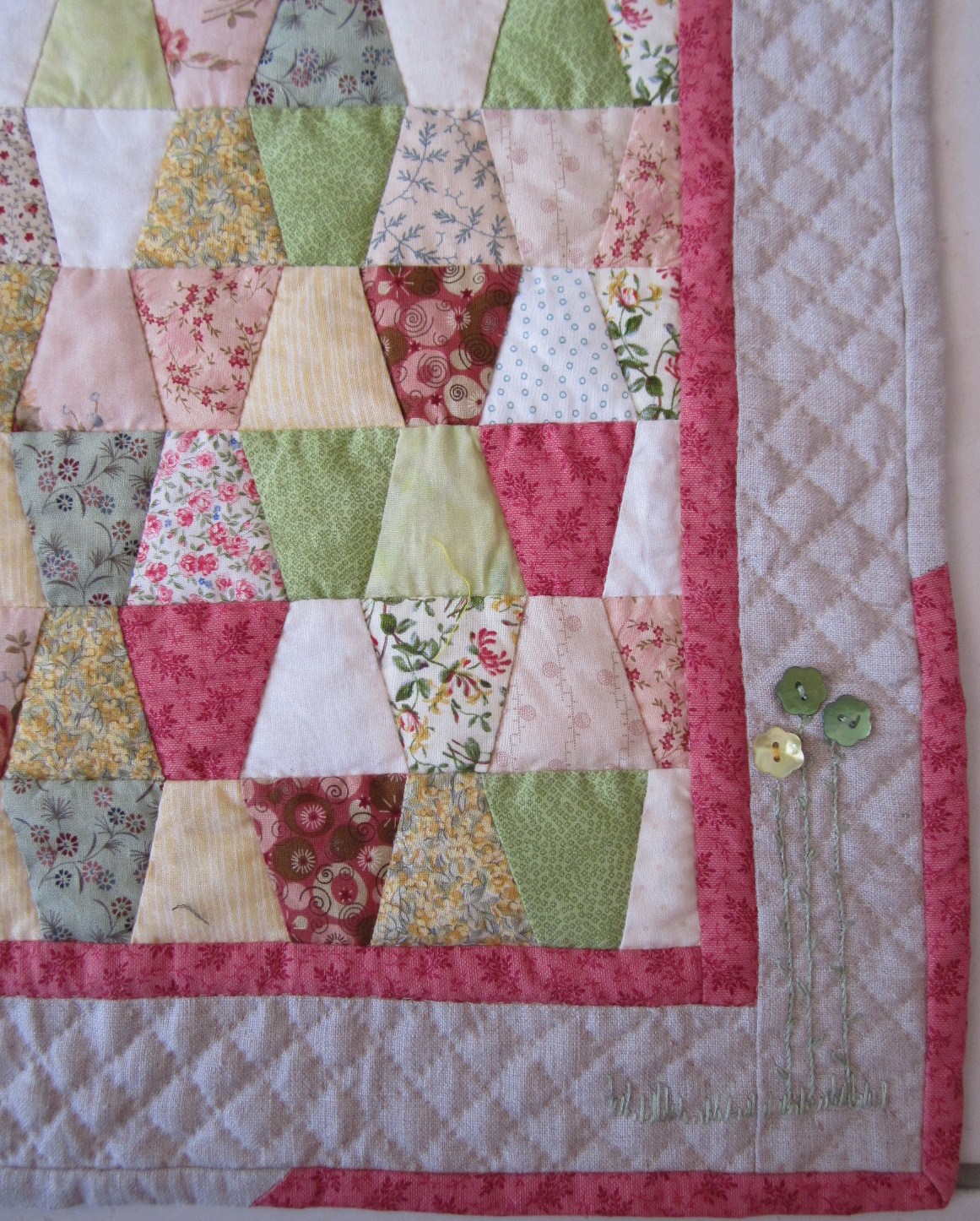 Ici un des nombreux détails de la bordure si joliment quiltée et brodée (cliquez sur la photo pour agrandir)