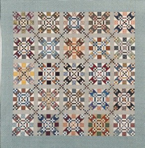 Aline Joulin est une quilteuse prolifique, bien en adéquation avec Brouage : elle adore les quilts traditionnels de très grand format, matelasse magnifiquement et très densément… comme toutes les autres de Brouage serais-je tentée d’ajouter, mais ce qui la distingue pour moi, c’est le choix de ses modèles et sa palette de couleurs, si proches de ce que je ferais si je m’y mettais ! J’aime avoir des maquettes simples et un look scrappy !