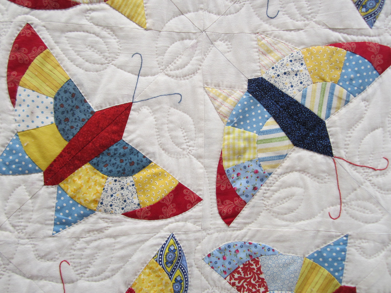 1. Merci de nous faire partager ces oeuvres superbes. J’ai un « grand faible » pour les deux premiers. Le Dear jane quels que soient les tons utilisés est toujours un ouvrage émouvant à admirer ! J’aime aussi beaucoup les ronds brodés.
