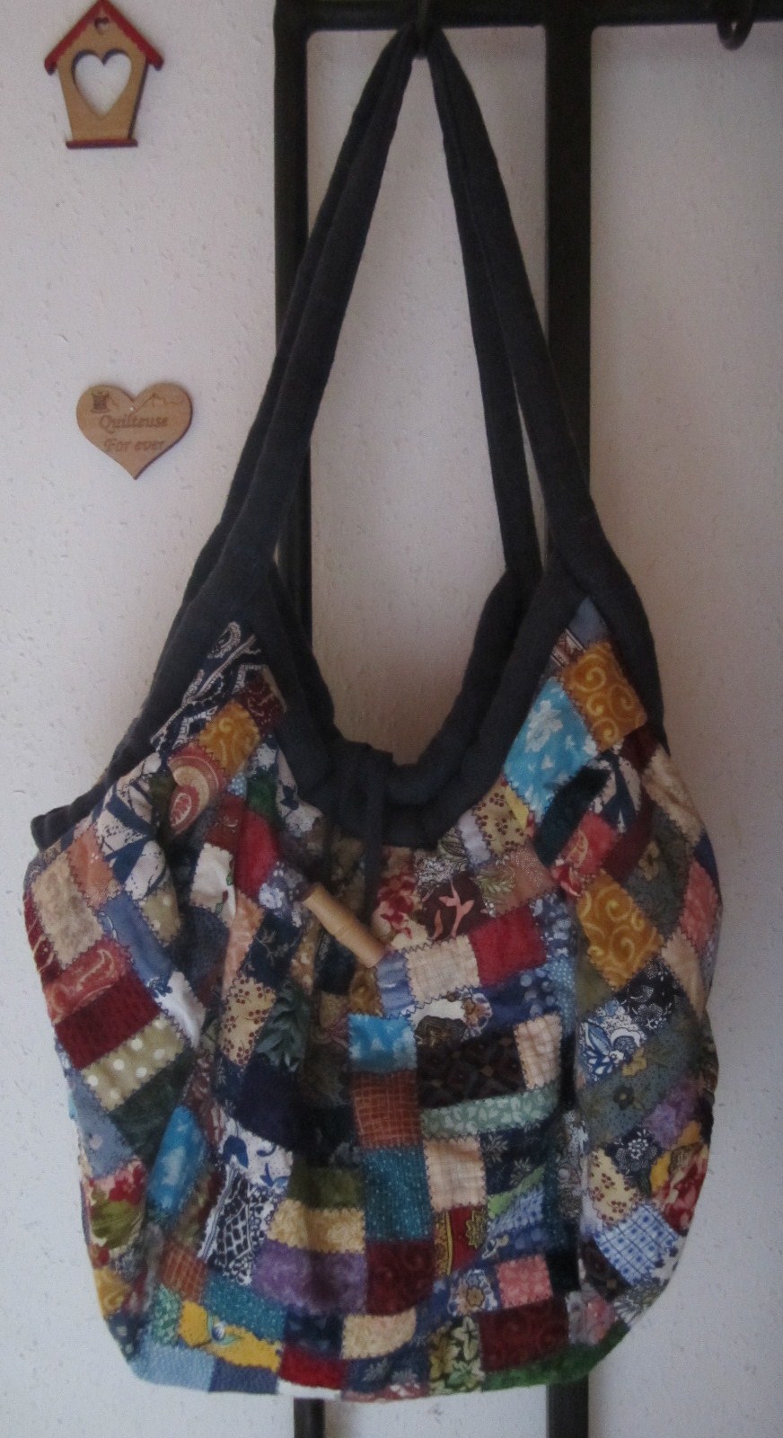 Naturellement, ce carré peut être un tissu d’un seul tenant ou un patchwork : ce modèle très facile est idéal pour avoir un sac à ouvrages très personnalisé ! Quant au tissu qui compose ma crapaudine, patience, je vous en parlerai en février… et j’essaierai d’en faire une plus jolie photo !
