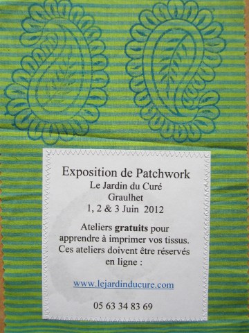 … Vous pourrez aller voir début juin une exposition de quilts, dont 15 de la Guilde Danoise, dans la campagne tarnaise tout près de Graulhet :