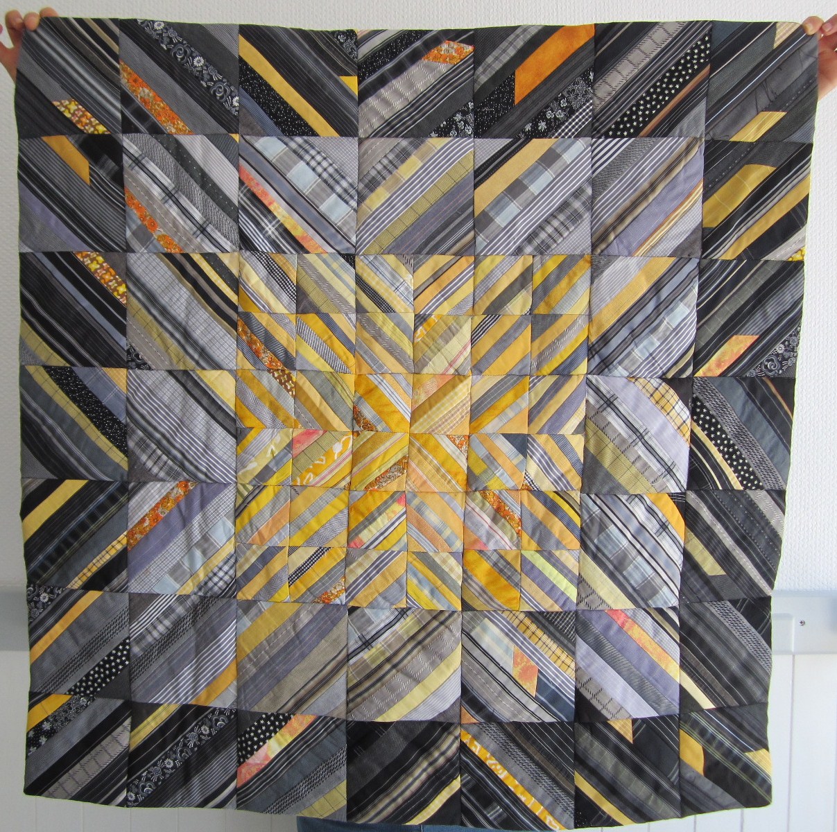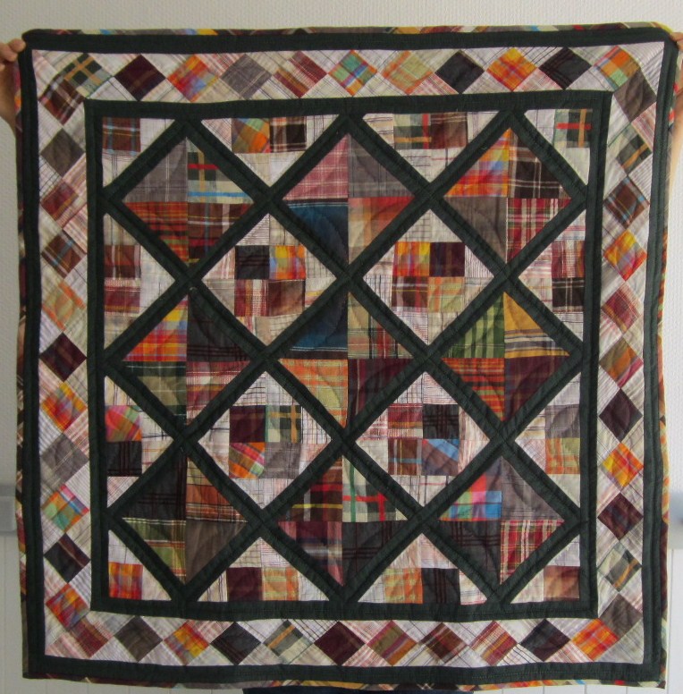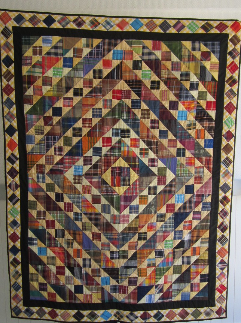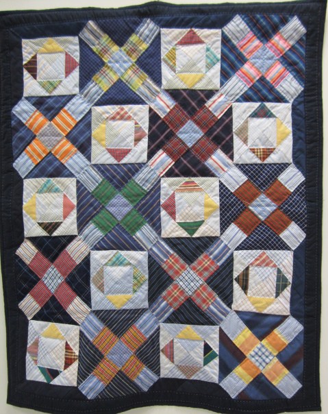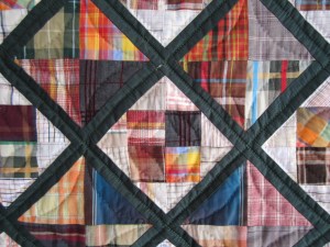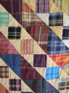 3. Récup de chemises à carreaux, c’est vraiment sympa à faire, j’en ai utilisé dans une copie d’un quilt de Will Vidinic. J’aime beaucoup l’assortiment de couleurs du premier quilt présenté ici, c’est doux et chaud avec un peu de bleu pour relever. Il en faut des chemises ! Je vais essayer d’en récupérer, et inciter mon mari à porter plus de carreaux puis l’obliger à avoir un stock de chemises. Il a horreur que je lui achète souvent des vêtements, il préfère ses vieux trucs. Je suppose que c’est comme ça chez vous aussi. Décidément nous les filles on est pas faites pareil que nos gus.