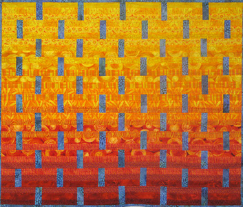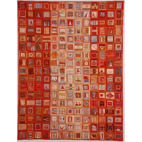 Charles Johns, un de ces hommes si talentueux dans ce monde féminin du quilting, a réalisé ce quilt « rouge-orange » avec des accents bleus (couleur complémentaire). « La terre est bleue comme une orange » a écrit Paul Eluard…