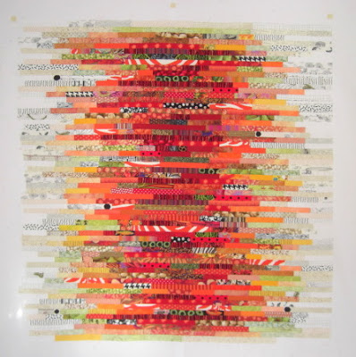 Paper Shredder Quilt par Kevin Kosbab, un autre homme inspiré par cette couleur forte… Quilt exposé sur du turquoise, pour le choc des couleurs !