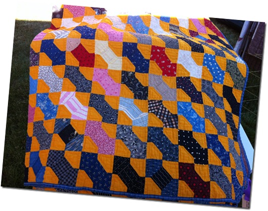 Pour admirer de nombreuses antiquités « cheddar » ou « chrome orange », je vous invite à aller sur le blog de l’historienne Barbara Brackman : Quilts cheddar.