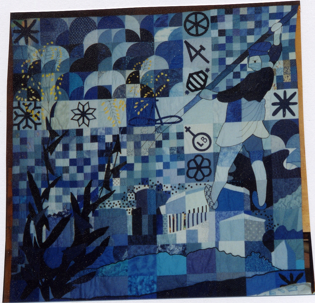 Il n’est pas étonnant que ce bleu divin inspire les artistes de la région… Cécile Milhau, artiste peintre-quilteuse-brodeuse(…) habitant dans le Tarn, dans le fameux triangle historique du pastel, initia en 2002 un travail collectif avec ses amies quilteuses : sur ce grand panneau textile se trouvent différents symboles des pasteliers, on devine des bâtisses, des horizons, des paysages, la plante aux fleurs d’or… Cerise sur le gâteau, des tissus sont teints artisanalement au pastel !