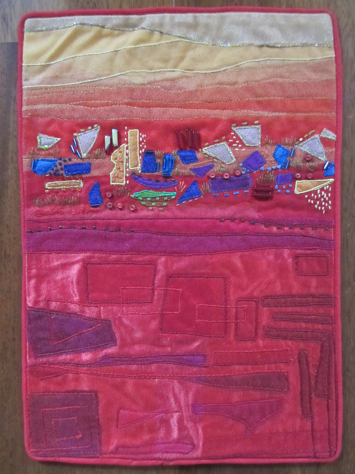 Nous avons récemment vu quelques exemples d’interprétation de tableaux de Klimt et comme moi, beaucoup de quilteuses s’intéressent à cette démarche. Les arts textiles sont une expression si proche de la peinture ! Les peintres peignent sur des toiles, les artistes textiles peuvent peindre leurs tissus… L’essentiel reste, pour l’artiste, l’expression de ce qui l’habite et pour le public, l’attraction qu’exerce l’oeuvre finie !