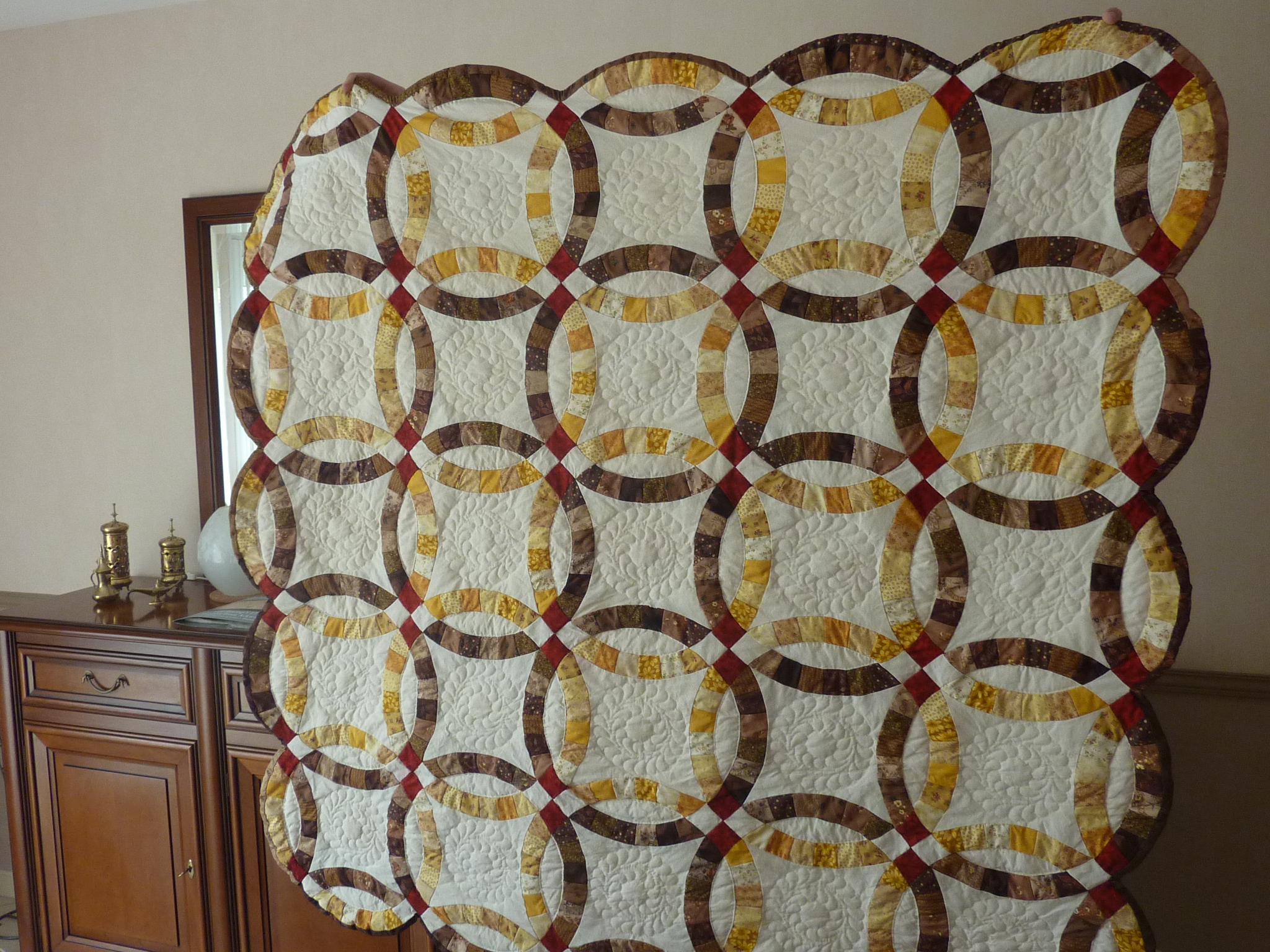 Cécile Denis est une des fidèles lectrices de la Ruche des Quilteuses et elle vient de terminer un quilt en « doubles anneaux de mariage ». Voici sa présentation :