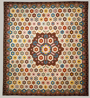 Quilt d’Elizabeth van Horne Clarkson, NYC, vers 1830, assemblé « à l’anglaise », probablement réalisé pour le mariage de son fils Thomas. C’est le plus ancien quilt en hexagones des musées américains.