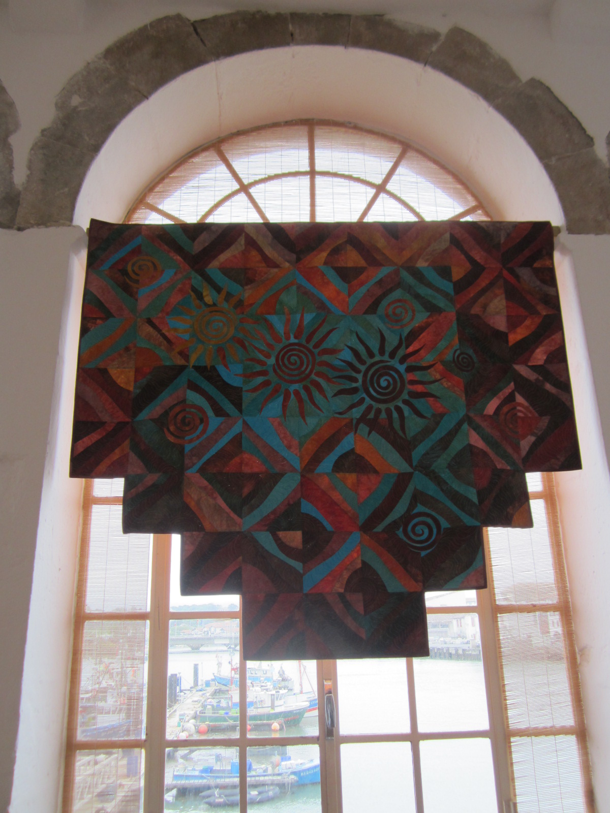 4. merci pour cette présentation de st jean de Luz,et ces beaux quilts en détail aussi , une préférence pour les turquoise et marrons et leurs spirales A+(merci pour le tuyau teinture ,j’ai lancé l’idée dans mon club mais n’ai pas eu trop d’échos! je retenterai ! …)