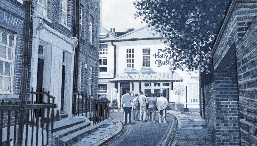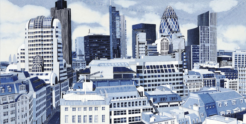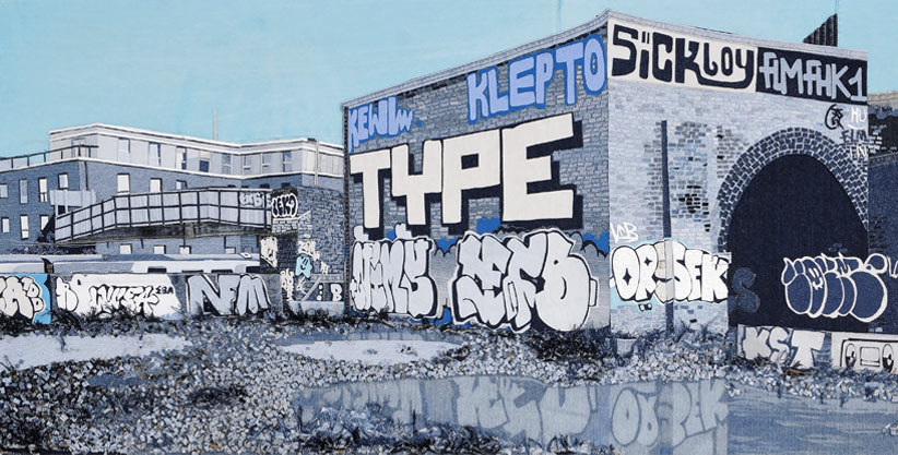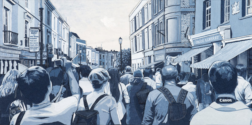 Pedley Sreet (70 x 40 cm) est un tableau surréaliste montrant un bout de quartier londonien actuellement dédié au street art.