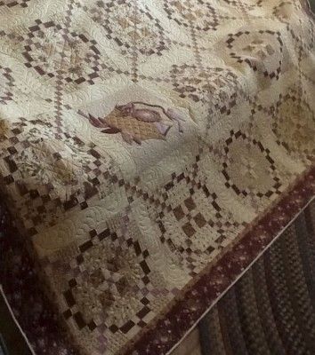 Je suis impardonnable : j’ai le magasine chez moi (aussi ça me disait quelque chose !!lol) et quand je disais que les quilts étaient énormes : avis aux amatrices : ils font 1,9 m x 2,38 m !! Mais les américaines travaillent pour la plupart à la machine. Ca va plus vite !!
