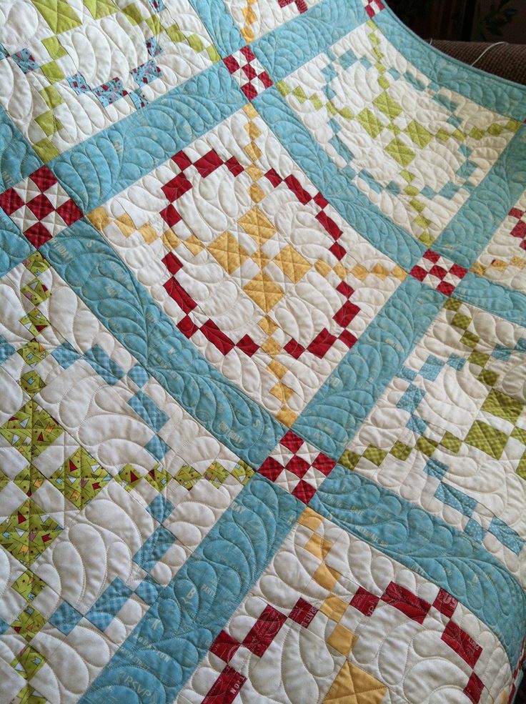 Kim de Fat Quarter Shop a été plutôt classique… mais que ces bandes bleues sont judicieuses !