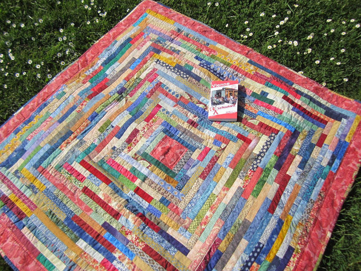 Hier après-midi dans le jardin, sur un quilt d’une dizaine d’années mais toujours apprécié (un vrai scrap-quilt !), j’ai potassé le Guide du Routard sur Vienne… et me voilà déjà un peu là-bas !