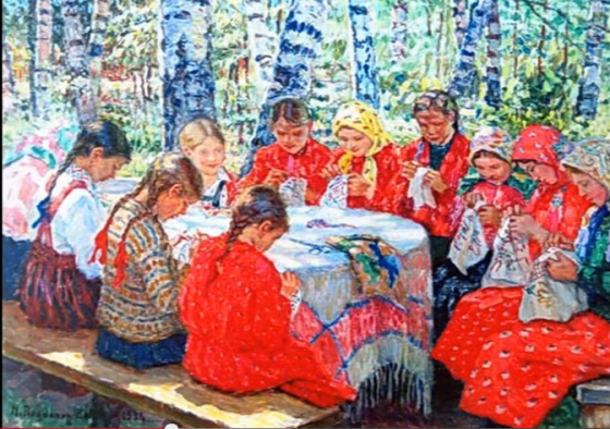 This painting was made in 1936 and is called « Needlework classes in a russian village ». You can find all his paintings here : http://www.wikiart.org/en/nikolay-bogdanov-belsky/mode/all-paintings. Many of them are gorgeous!
