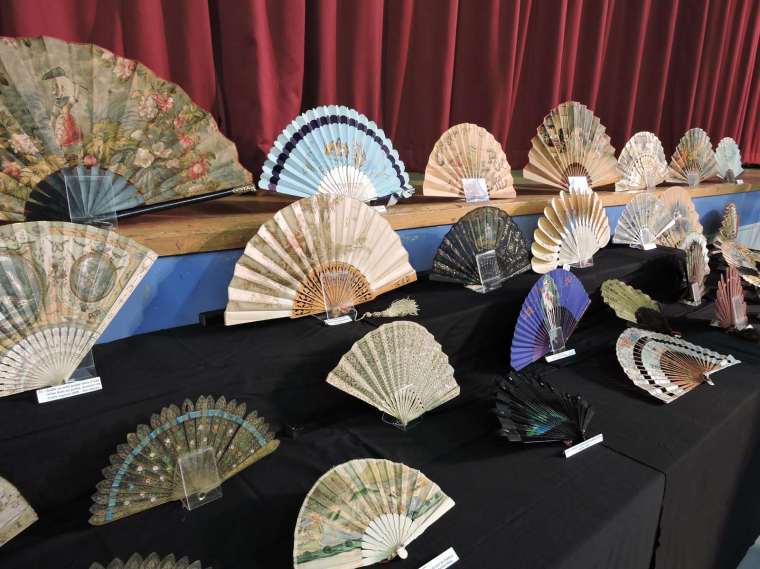 Les intervenants,  Madame Yvette Ferran et son frère Jean Bisson, ont tout au long de leur vie collectionné des éventails de toutes sortes, de toutes époques, de tous lieux. Leur grand-mère et arrière-grands-parents étaient éventaillistes chez Duvelleroy ! Avec passion et non sans humour, ils nous ont fait aimer pour toujours ces petits objets qui allient l’utile à l’agréable. Je ne vous dévoilerai pas tout ce que nous avons appris mais je peux vous montrer quelques exemples de leur fabuleuse collection :