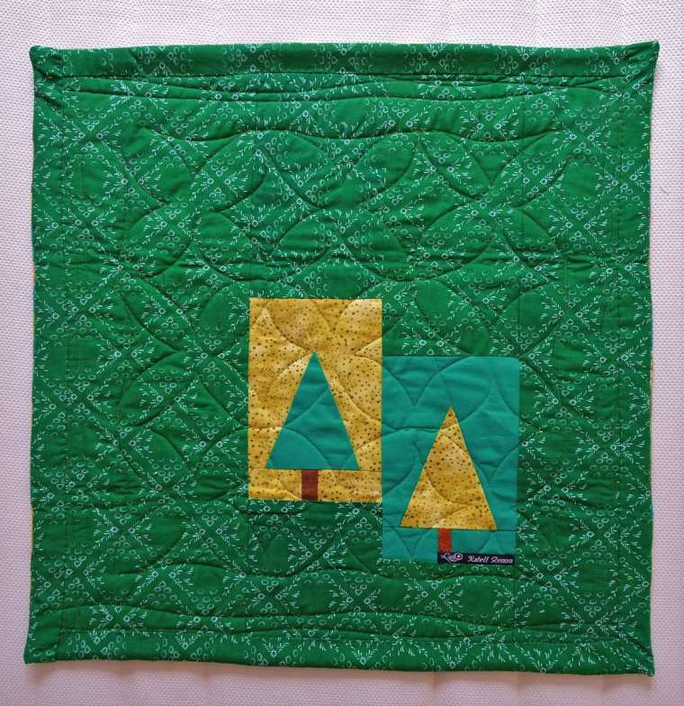 A Creutzwald, la forêt n’est pas loin, tout comme la frontière allemande, à 500 mètres de la salle ! Ces deux arbres symbolisent l’amitié franco-allemande qui me tient à cœur, ils sont au dos du quilt Creutzwald ci-dessus.