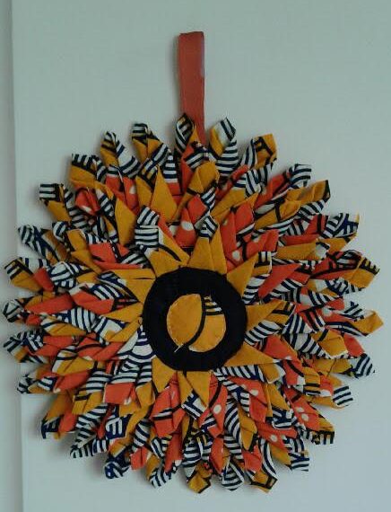 Le Pine Cone est monté « à l’envers », les pointes vers l’extérieur, le pliage est en trois au lieu de deux pour avoir des pointes plus aiguës (comme les Russes) et le tissu est un wax. Nous sous-estimons encore les capacités décoratives de ces tissus de style africain…
