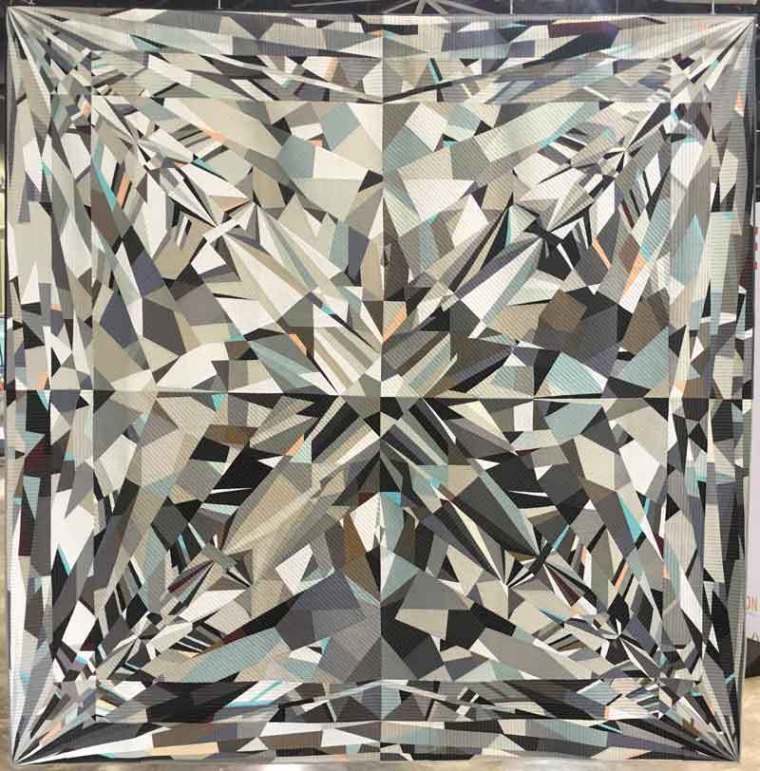 Et, surprise l’année dernière, quand j’ai vu un des quilts vedettes du QuiltCon 2018, une merveille tout en économie de couleurs et pourtant si lumineux, cousu sur papier :