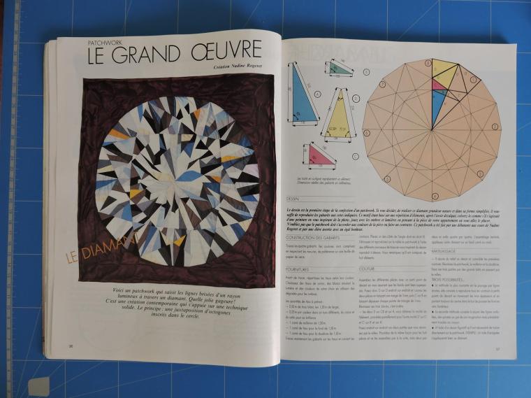 Chaque oeuvre a sa propre brillance et le quilt australien est à couper le souffle, mais je dois dire que j’ai un faible pour celui de la Française, avec ses touches de bleu-glacier et de jaune… Son livre, Ma vie en patchwork, édité en 1991, fut un grand succès, puis elle a disparu du devant de la scène. Aux dernières nouvelles, Nadine vit à présent dans le Sud-Est et se consacre au boutis. Mais peut-être en savez-vous un peu plus ?
