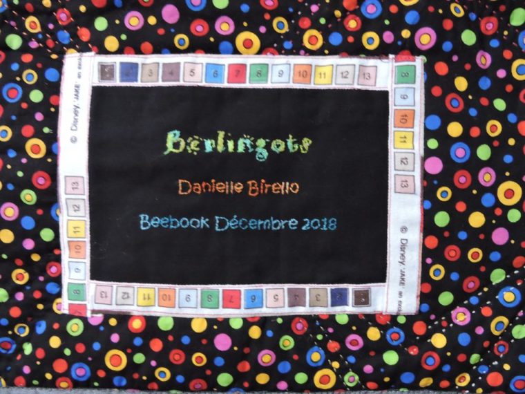 … C’est ce qu’on dit parfois dans la Ruche… en parlant des quilts bien sûr ! Nous nous motivons mutuellement pour faire de beaux dos de quilts, et surtout de belles étiquettes. Pour BeeBook, Kristine nous a brodé une bonne partie d’entre elles, car elle aime ça et le fait si bien… Belle solidarité, n’est-ce pas ?