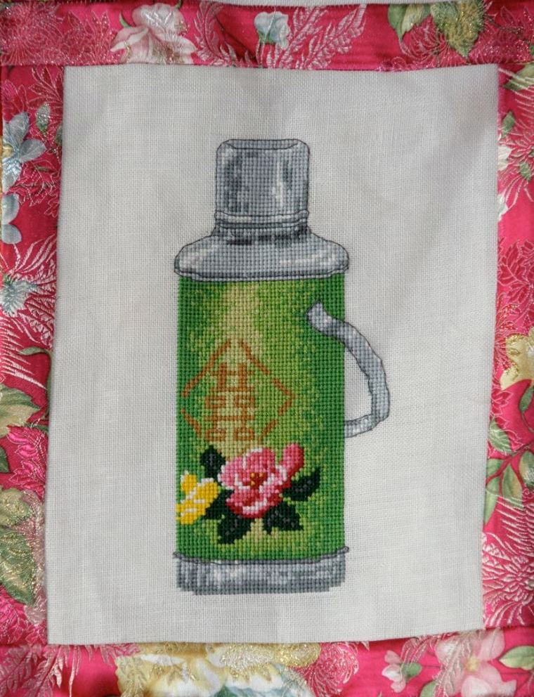 En 2008, Brigitte a proposé d’illustrer les escales que la compagnie desservait sur le continent asiatique. Il fallait broder dans un carré de lin (15 cm) au point de croix, un élément symbolisant l’escale choisie par les brodeuses, ainsi que quelques brodeurs.