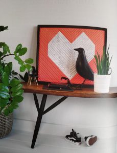 Le Patchwork Moderne d’Alice Kreyder, c’est aussi plus de la moitié du livre riche de douze modèles beaux et utiles pour la maison et les enfants. On voit bien qu’Alice est une jeune maman ! Ses modèles sont tous faciles à faire et à intégrer dans un intérieur. Son livre est destiné à la plupart des personnes souhaitant (se) faire plaisir avec des ouvrages faits maison, sans y passer un temps infini : vive le matériel et les techniques modernes ! C’est ainsi qu’Alice se définit comme une quilteuse fonctionnelle plutôt qu’artiste, utilisant ses quilts au quotidien, les lavant à la machine sans arrière-pensée, tout en (s’)offrant des objets qui ont bien plus qu’une simple fonctionnalité : non seulement ils sont beaux, mais ils sont une présence, une preuve d’amour, un câlin textile comme elle le dit si joliment !