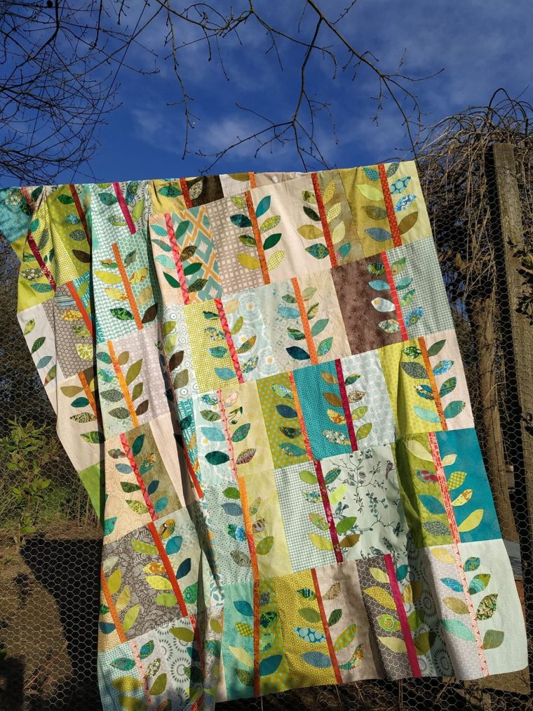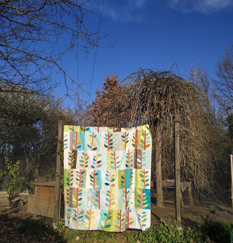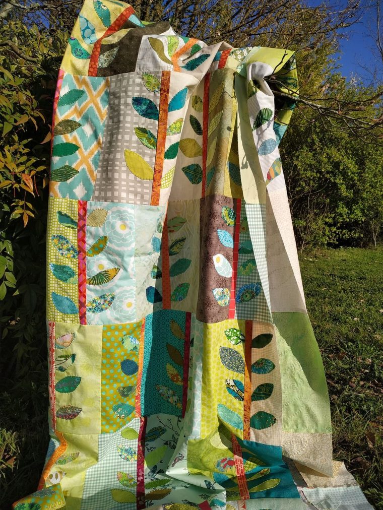 Mes quilts préférés ont un lien étroit avec la nature, ce n’est pas un hasard, alors je vais sans doute continuer dans cette voie. Celui-ci sera, comme le quilt météo, forcément lié dans ma mémoire à cette période difficile, mais où la solidarité s’exprime de nouveau.