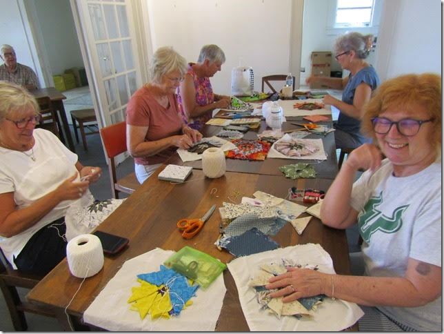 Ce n’était pas une simple visite à Martine, puisque j’ai partagé lundi dernier avec une petite dizaine de quilteuses l’histoire de Betty Ford-Smith et de Miss Sue, le sauvetage de cette technique du Pine Cone quilt, et puis la transmission… Une journée qui fait du bien !