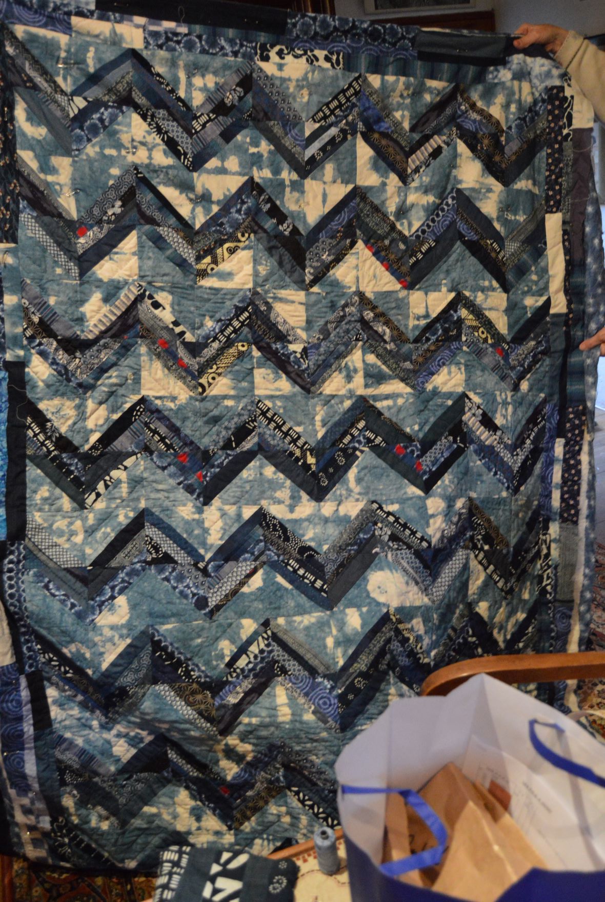 Des essais de teinture à l’indigo avec un kit de chez Emma et des bandes de mille tissus chinois, indiens, japonais, africains… L’artisanat à l’honneur, toujours !