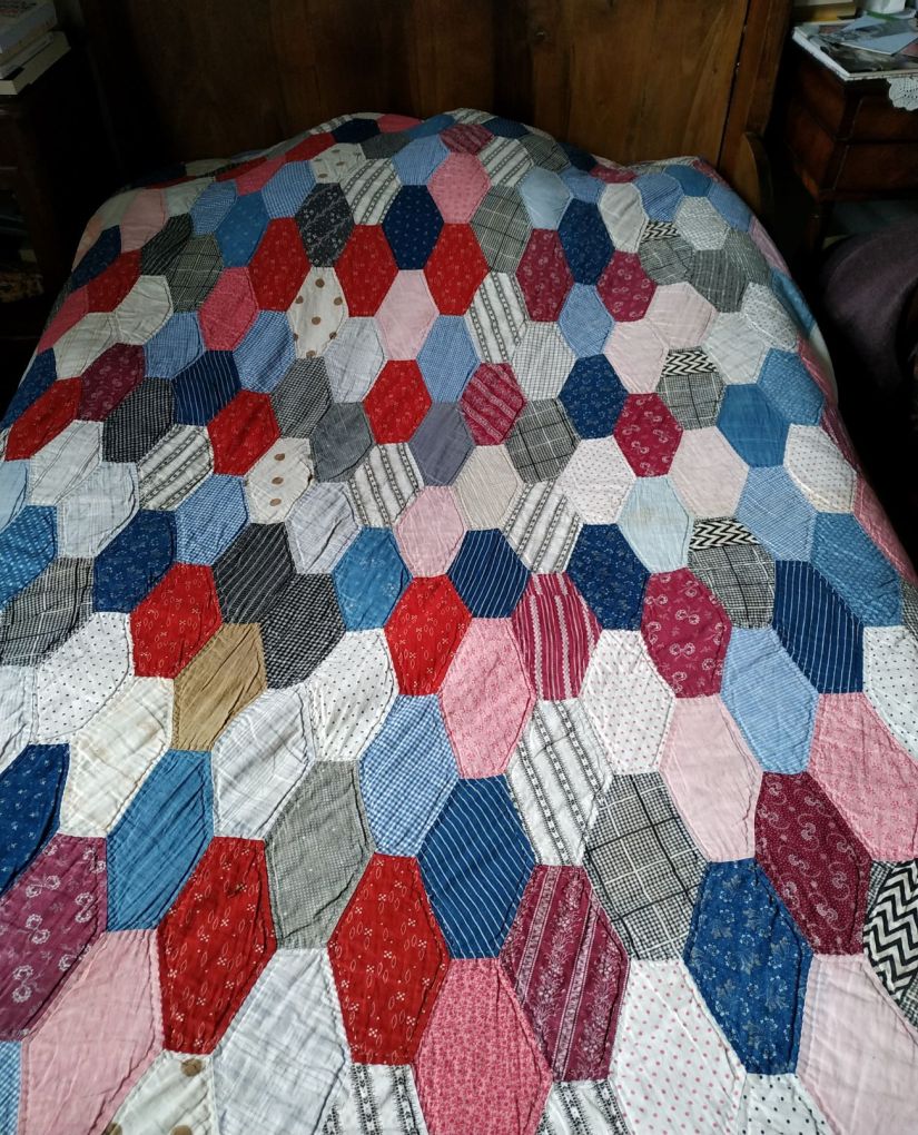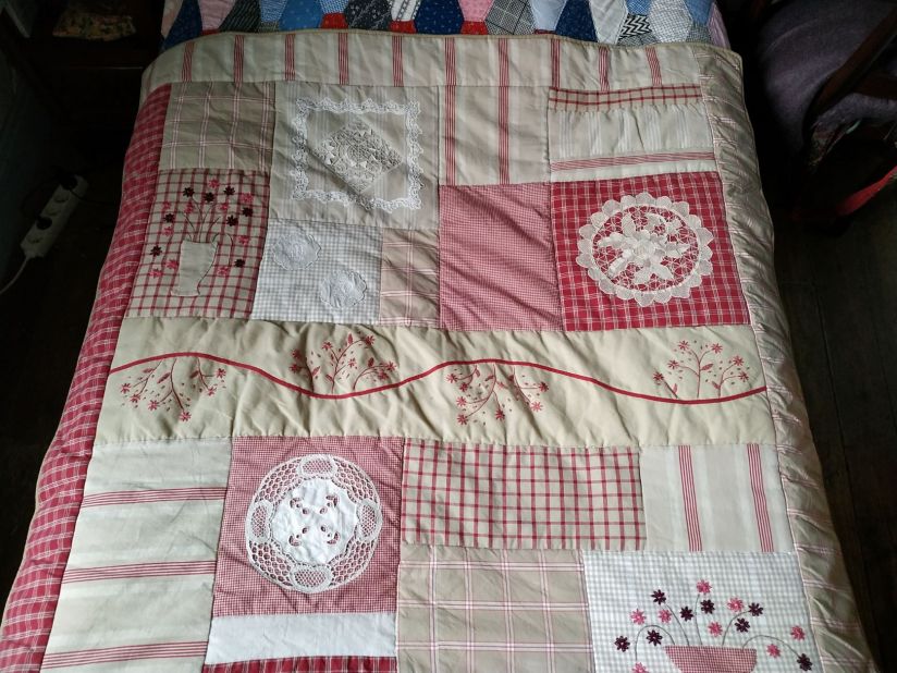 Un top ancien acheté à Sainte-Marie-aux-Mines, quilté avec amour et patience…