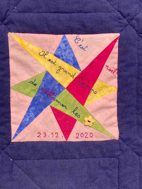 J’ai cousu cette étoile éclatée pour les 40 ans de ma plus jeune fille Florence pendant le confinement.