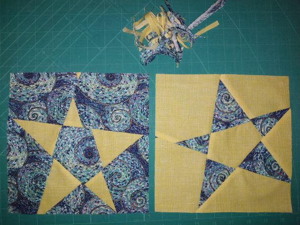 Même en faisant exprès de m’éloigner du dessin de l’étoile régulière et symétrique, j’ai réussi à faire 2 blocs équerrés à 20 cm. Les pointes sont coupées ? Pas grave !! Si vous faites le dessin régulier, cela ne vous arrivera pas.