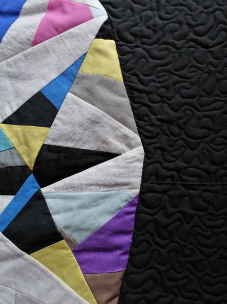 Jacqueline, j’ai quilté la partie noire en vermicelle et le diamant dans les grades lignes des coutures.