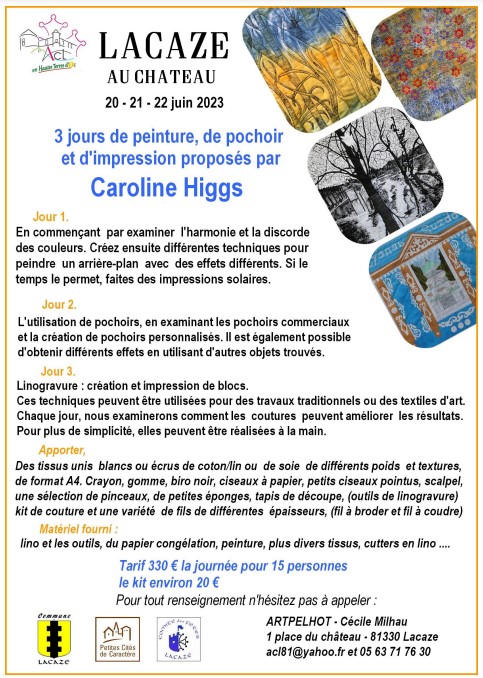 ARTPELHOT profite de la présence de Caroline Higgs pour proposer un stage de 3 jours pour artistes en herbe. Je connais un certain nombre d’œuvres de cette artiste et je suis certaine que ce stage apportera beaucoup à toutes celles qui y participeront : ouverture d’esprit, nouvelles techniques, créativité réactivée!…