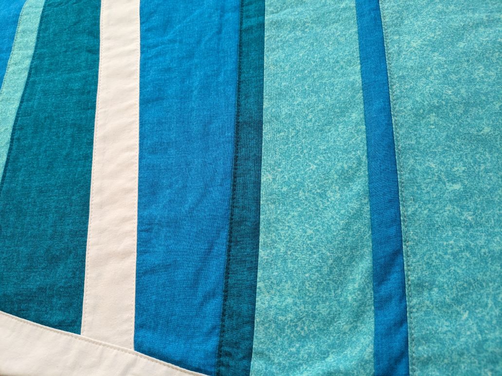 Je suis contente d’avoir fait plaisir à ma cousine avec ce couvre-lit moderne qui évoque les nuances divines de la mer en Grèce !