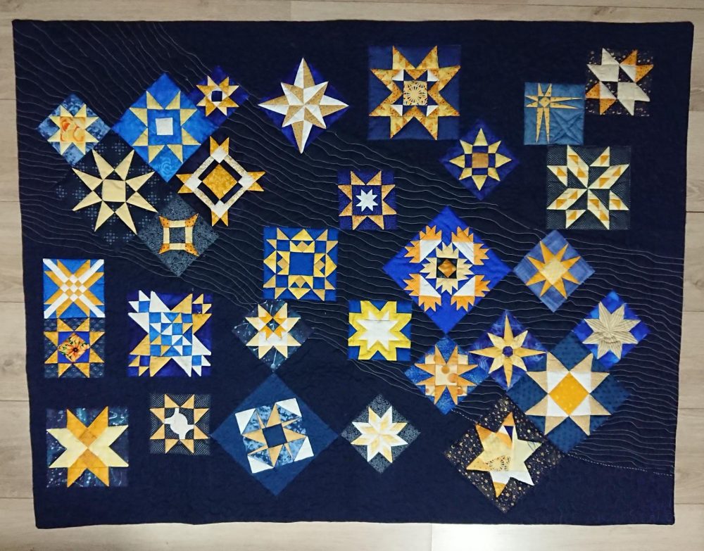 Nous nous sommes connues grâce à France Patchwork, qui organise tant d’occasions de rencontrer les quilteuses de notre département, notre région et notre pays. Nous nous sommes croisées plusieurs fois, nous avons commencé à mieux nous connaître pour les 30 ans de l’association : ma délégation organisait un loto et l’Assemblée Générale annuelle à Balma (31), la délégation du Bas-Rhin avec Esther, Claire et Michelle ont fait une des plus marquantes JNA en septembre 2014 à Sélestat (67). Avec ces trois filles, des liens de confiance et d’amitié se sont noués. Michelle et moi nous rencontrons aussi tous les ans à Nantes en avril (une crêperie nous a quasiment blacklistées tellement nous sommes bruyantes toutes ensemble), en Alsace en septembre… la vie est belle, tant que nous pouvons continuer nos rencontres tout en profitant des évènements textiles que nous aimons tant !
