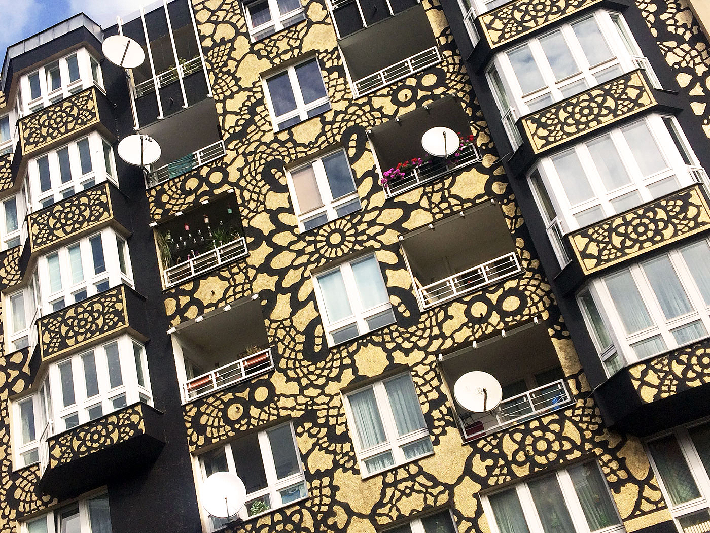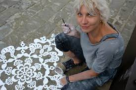 Elle ose souvent des graffitis sauvages, elle a aussi de prestigieuses commandes. L’artiste polonaise a travaillé sur 5 continents, 40 pays, 100 villes, toujours ou presque sur le thème des dentelles. De tout cœur je lui souhaite de continuer longtemps à orner ainsi nos villes de peinture blanche, et noire ou grise parfois !