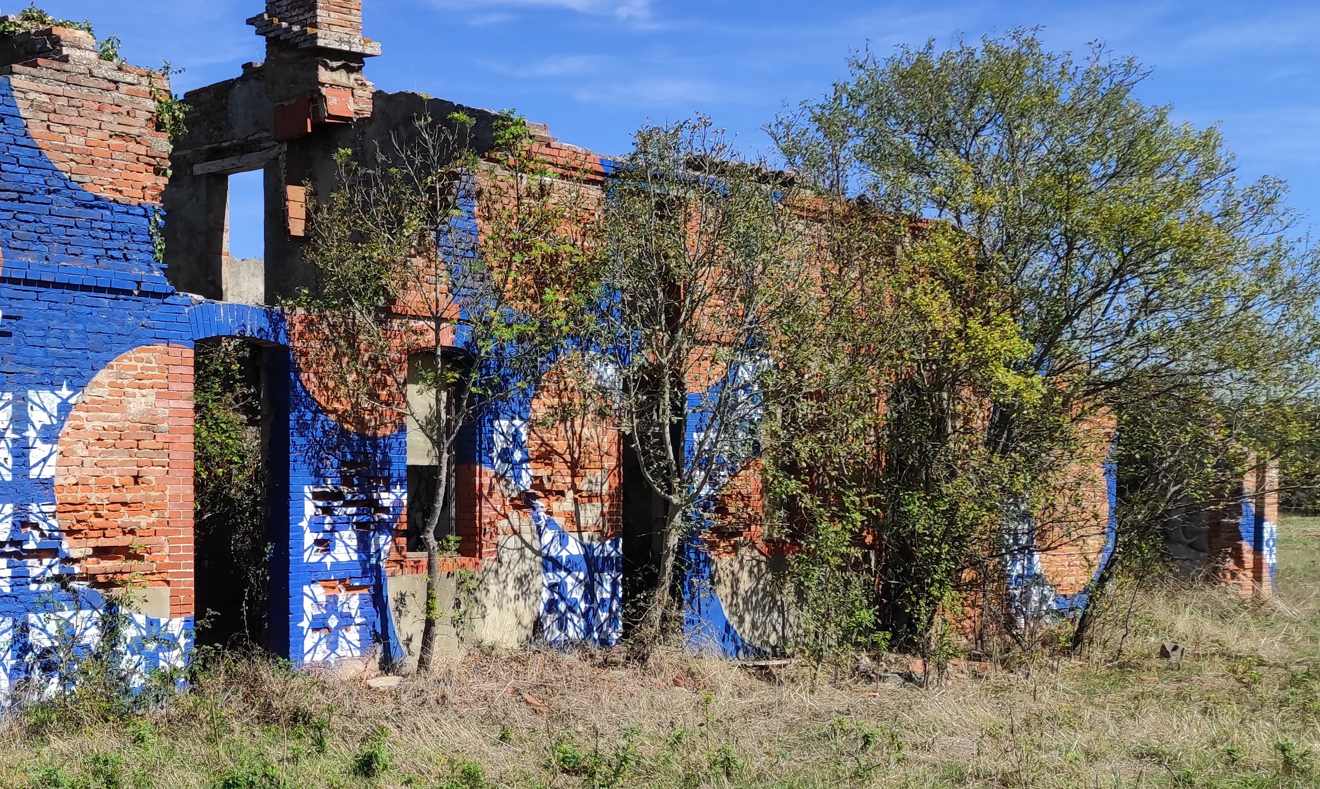 Pourquoi me suis-je penchée sur cet art aujourd’hui ? Simplement parce que, tout près de chez moi, mon regard a été attiré par des couleurs insolites sur une ferme en briques, en ruine depuis un certain temps. Elle est entourée de champs, peu accessible. Mais la semaine dernière, j’ai entraîné mon mari pour nous en approcher et voir ça de plus près.