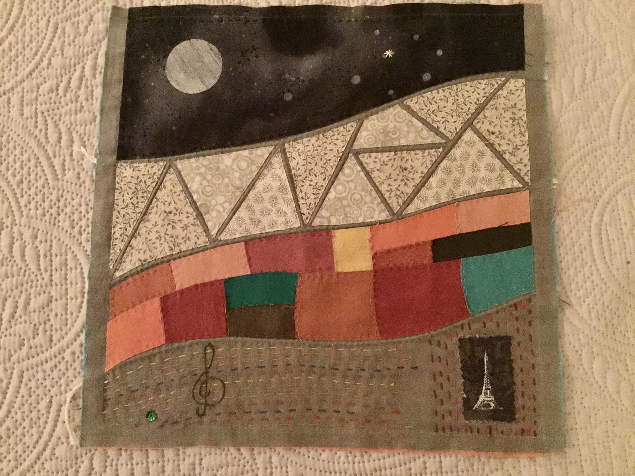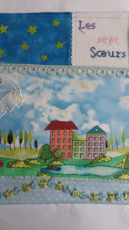 Voici donc mon bloc, il manque encore quelques broderies – fenêtres des immeubles colorés, branches d’arbres, un peu d’écume sur la mer …- que je fais à temps perdu. Et il manque un bon coup de fer bien sûr.