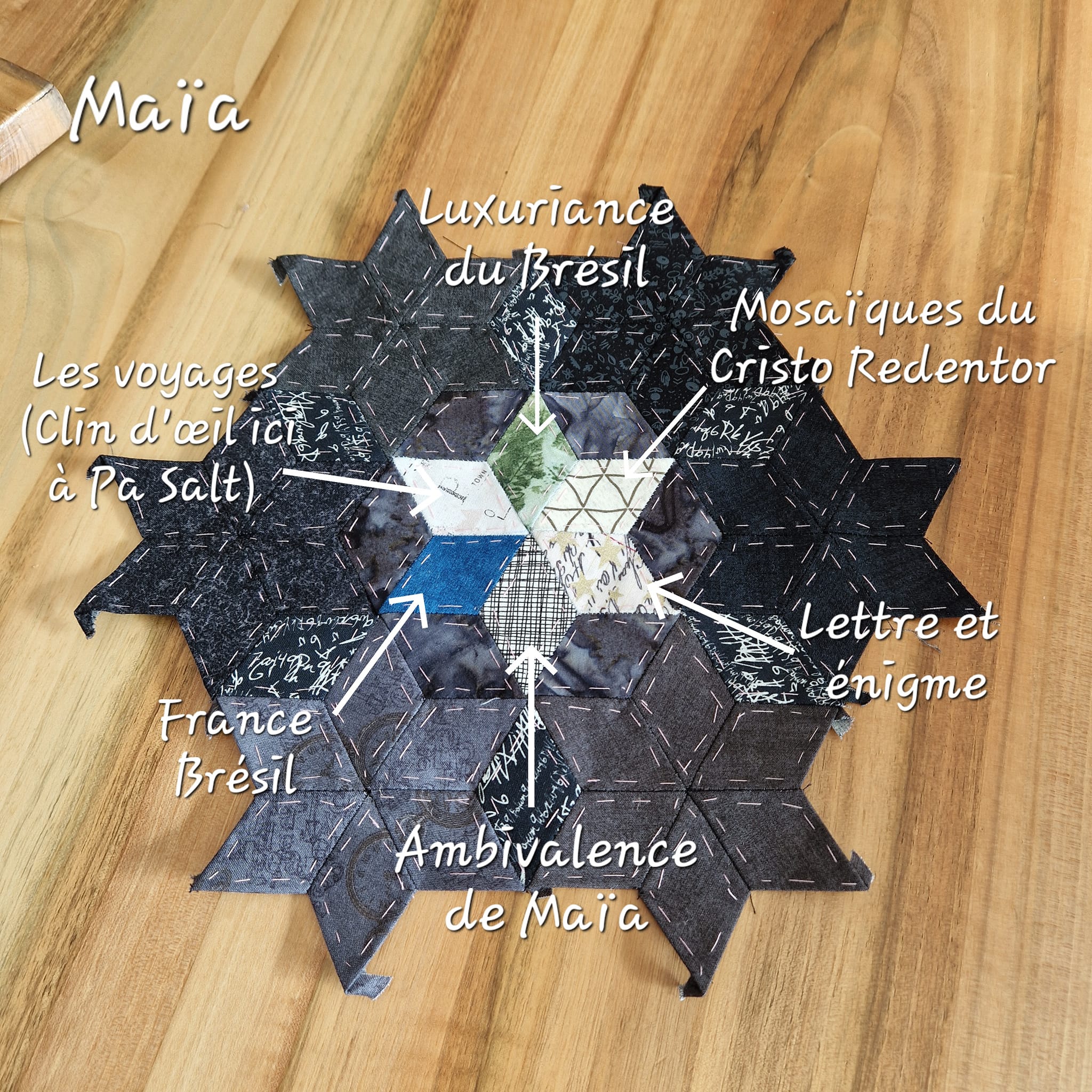 L’histoire de Maia, c’est le premier tome de la saga des Sept Soeurs de Lucinda Riley. Je ne suis pas la seule à me réjouir d’avoir prolongé la lecture en cogitant sur la création d’un bloc textile sur ce thème !