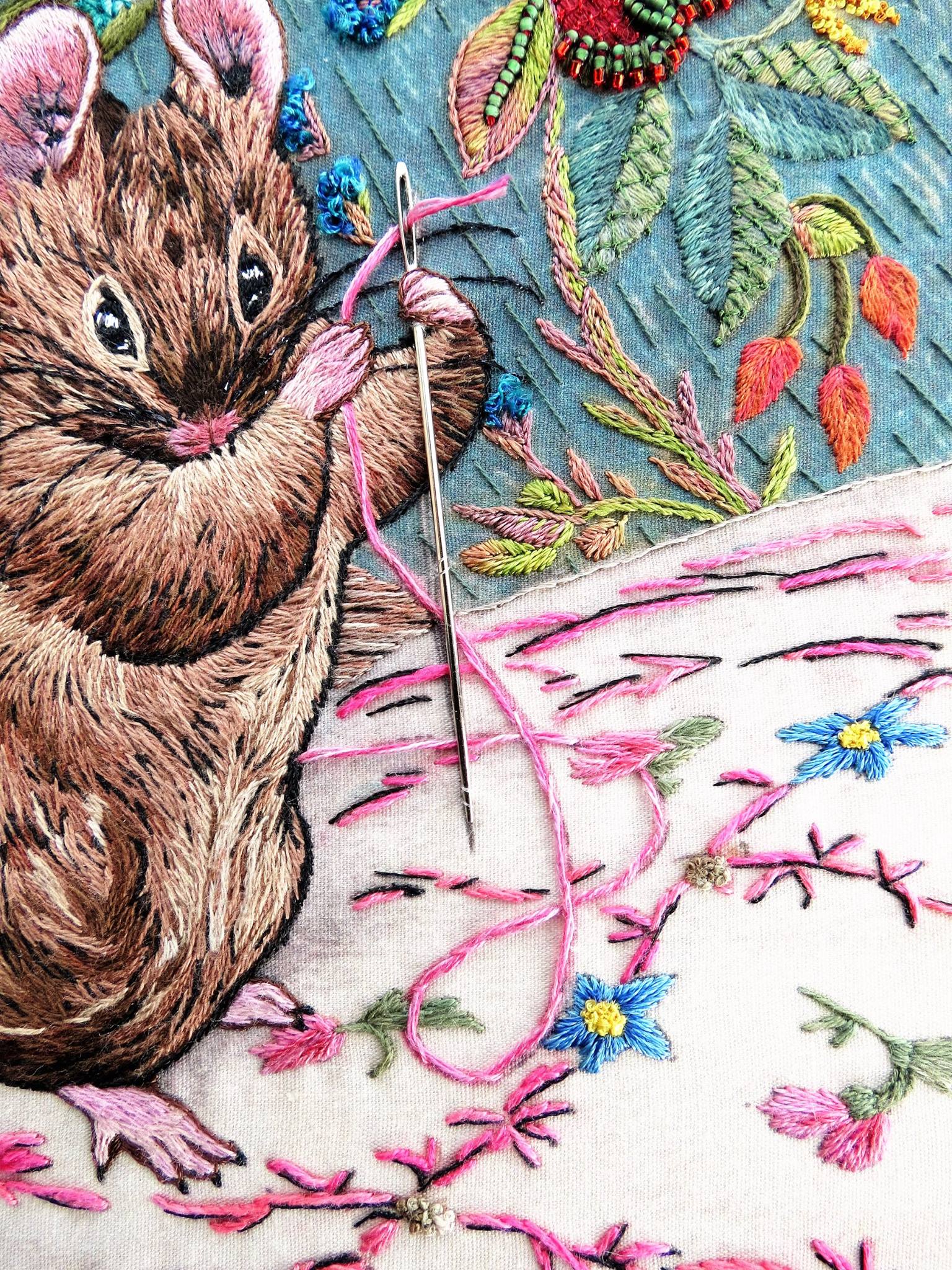 Sur internet, vous trouverez pléthore d’interprétations de dessins au point-de-croix, en appliqué… J’aime particulièrement cette broderie d’Elza’s Embroidery :