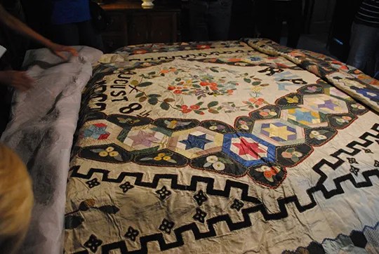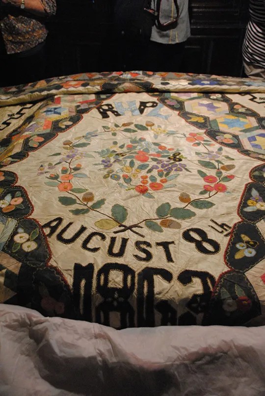 À Hill Top Farm, on peut admirer un splendide quilt de mariage daté de 1863. Mais il semble neuf. J’ai fait ma petite enquête…