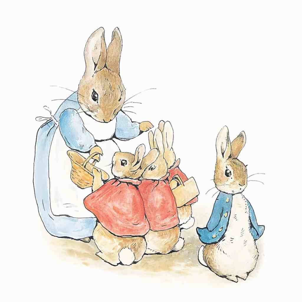 1900, Beatrix a déjà 33 ans, elle vit toujours chez ses parents et dessine toujours. Elle a remarqué, chez des amis, que l’histoire de quatre lapins qu’elle avait inventée spontanément pour des enfants les avaient ravis ! Elle écrit donc, à la main et avec de délicieuses illustrations, The Tale of Peter Rabbit/Le Conte de Pierre Lapin. Personne ne voulant l’éditer, elle le fait en autoédition en noir et blanc et le succès rapide lui apporte un éditeur, qui met des couleurs aux dessins… et qui deviendra son fiancé.