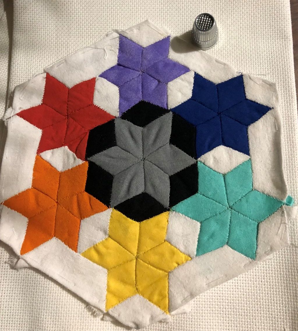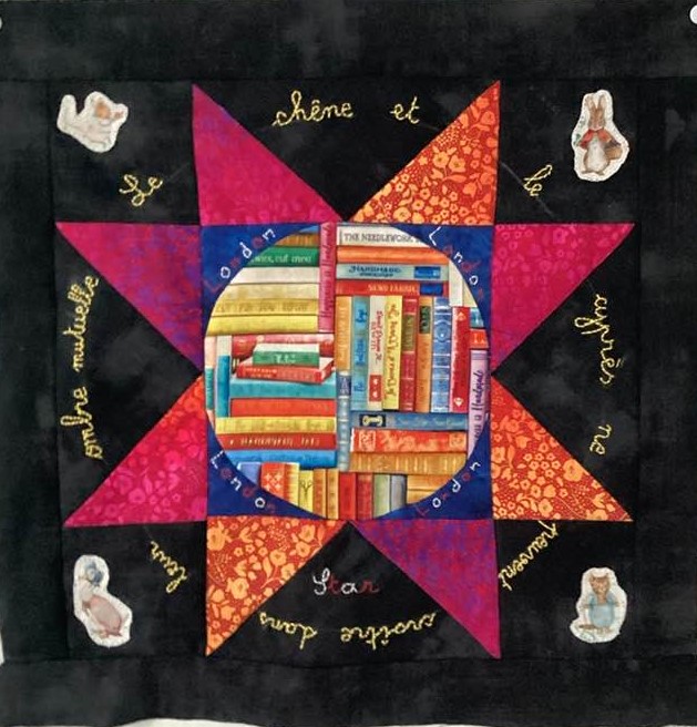 Nous avons été nombreuses à hésiter sur la représentation textile de ces sujets. Bien sûr, finalement les résultats sont impressionnants ! Vous reconnaîtrez les indices, surtout si vous avez lu ce livre, mais vous pouvez admirer les blocs sans tout comprendre… En voici une petite sélection, faite au hasard des présentations dans le groupe Facebook.