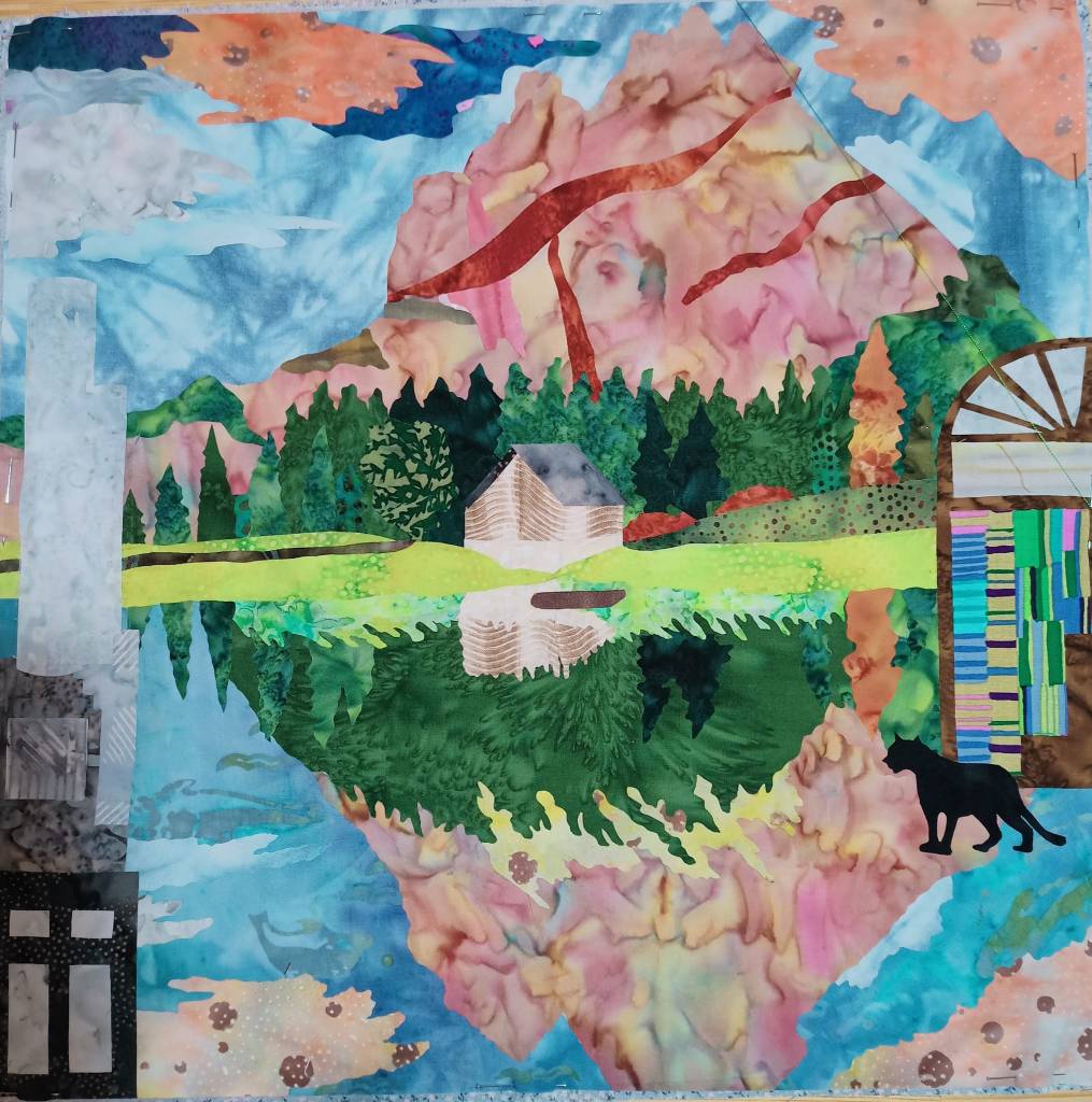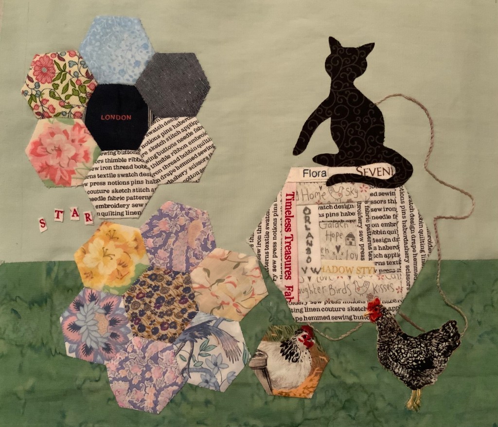 Elle ne les passera pas à Battersea (évocation à gauche mais pas quilté pour cause de surcroît d’activité 🥴), ni dans la librairie d’Orlando mais avec Mouse et Rory bien au chaud dans leur maison sous le regard de la panthère.