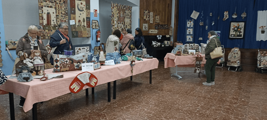 En mai, c’était “La Feria de Patchwork de Asturias” dans la petite ville de Pola de Lena, en Asturies. Celle-ci est un exemple des nombreuses manifestations de patchwork qui se font en Espagne, tant pour les ouvrages mêmes comme pour la diffusion de ce qui se fait dans cette activité.  C’est incroyable la quantité de travaux, plutôt des œuvres de petite taille, telles que les sacs, les albums, coussins, poupées… et les quelques quilts étaient de grande qualité et très détaillées.