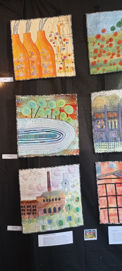Il y avait des expositions individuelles et aussi de divers groupes tels que ceux de la Collection Nationale (néerlandaise) des quilts, SAQA (Studio Art Quilt Associates) de l’Orient Express, déjà admirés à Nantes ou les “15 par 15”, un groupe de 15 quilteuses de différents pays qui font des quilts de 15 par 15 inches sur un thème donné. Passionnants !