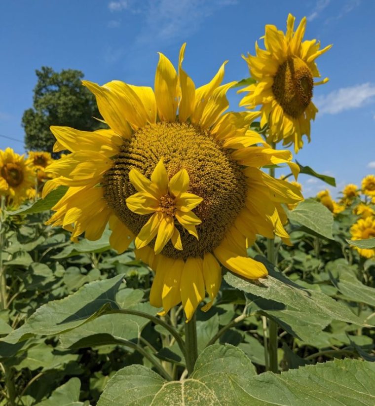 Kavita Shah dans le Gers… Cette fleur m’évoquait toujours Van Gogh, mais depuis l’année dernière, elle me rappelle la venue de Kavita. Elle adore les tournesols et, aux tout premiers jours de juillet 23, ils étaient heureusement en pleine floraison !