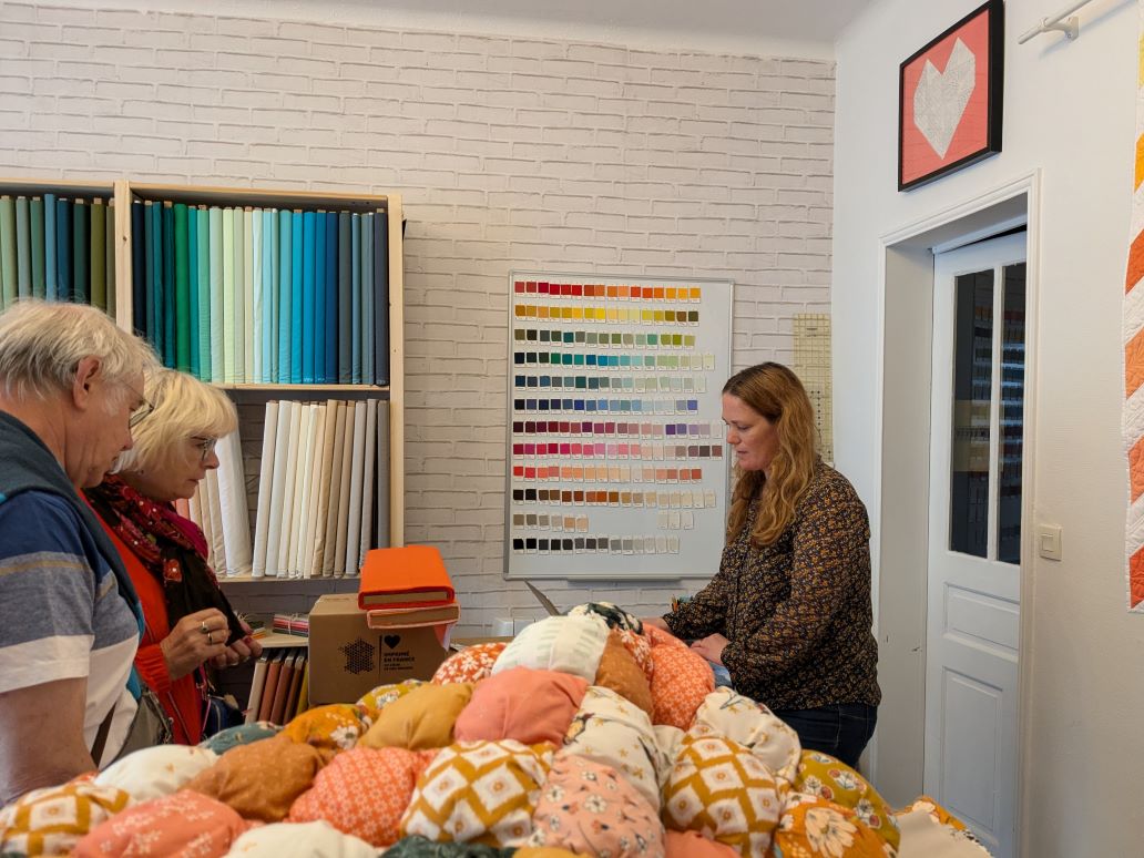 Beaucoup de quilteuses ont une belle bibliothèque et n’achètent plus de livres. Cela m’a fait hésiter à en proposer un nouveau ! Mais l’aventure me plaisait et je crois que j’apporte une voix/voie pas encore assez exploitée en France.